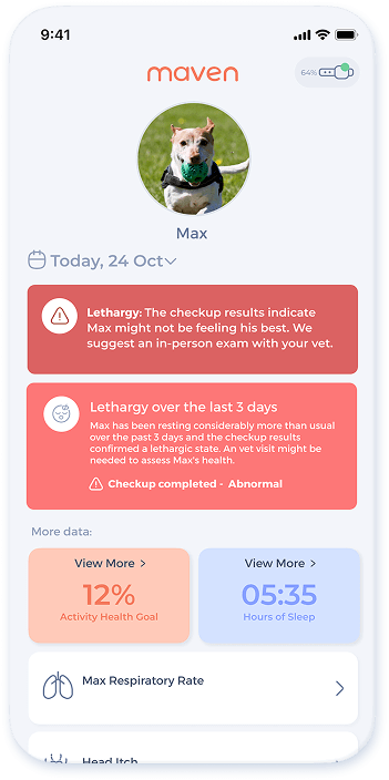 Maven gives me peace of mind while I’m at work. My cat has HCM and asthma, so being able to see his activity, sleep, and breathing trends from my phone is reassuring. I love that the app combines everything, activity tracking, and a symptom journal, so I can easily stay on top of his health. I haven’t found another device that comes close.