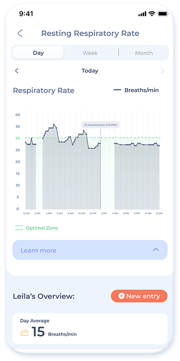 The collar captures resting respiratory rate throughout the day and night. No timers, no spreadsheets.