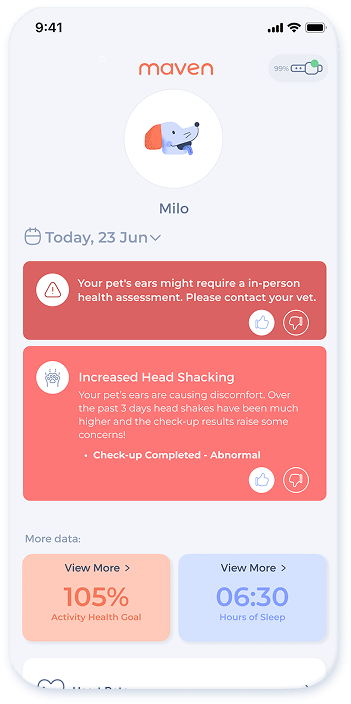 Vets say most skin conditions start with subtle signs, scratching, licking, or night restlessness. Maven Pet tracks these automatically, helping you catch early symptoms of allergies, infections, or irritation before they become chronic.